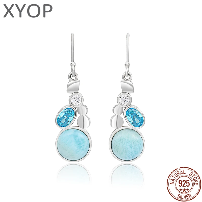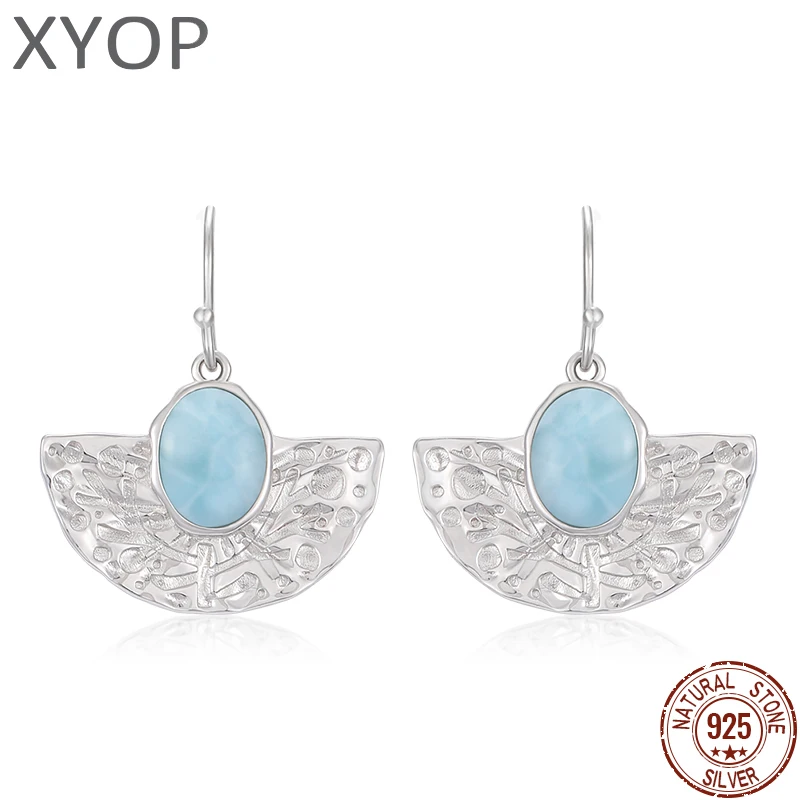 925 Sterling Silber Schmuck für Frauen Larimar Ohrring Neue Mode Natürliche Wertvolle Text...