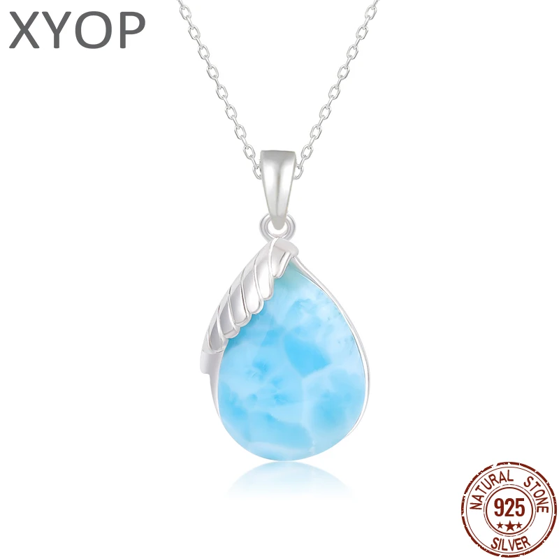 925 Sterling Silber Schmuck Klassische Anhänger Halskette Natürliche Edel Larimar Retro Bl...