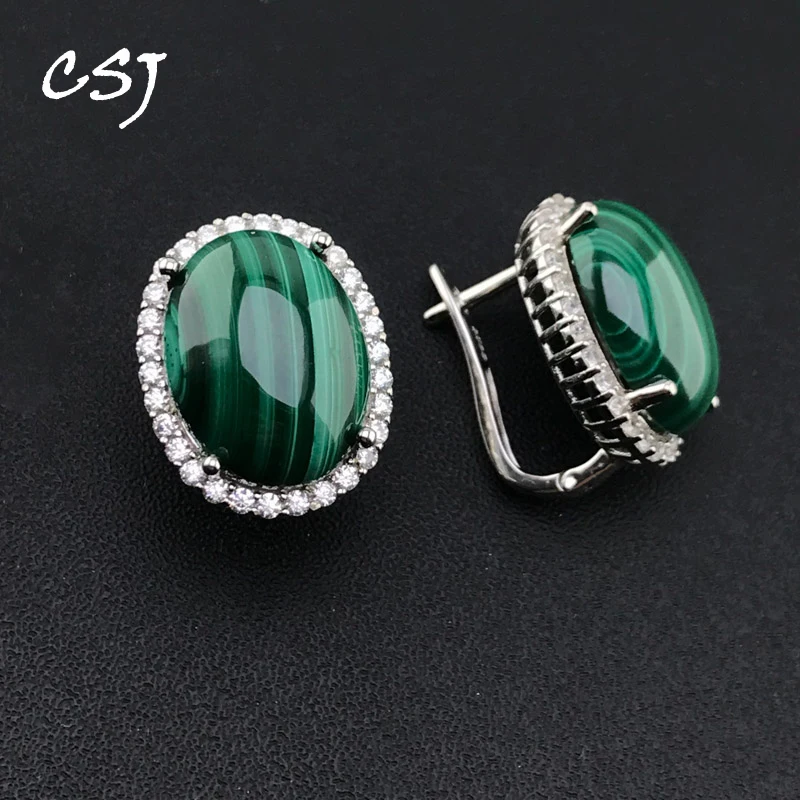 CSJ Echte Natürliche Malachit Ohrringe Sterling 925 Silber Lar...