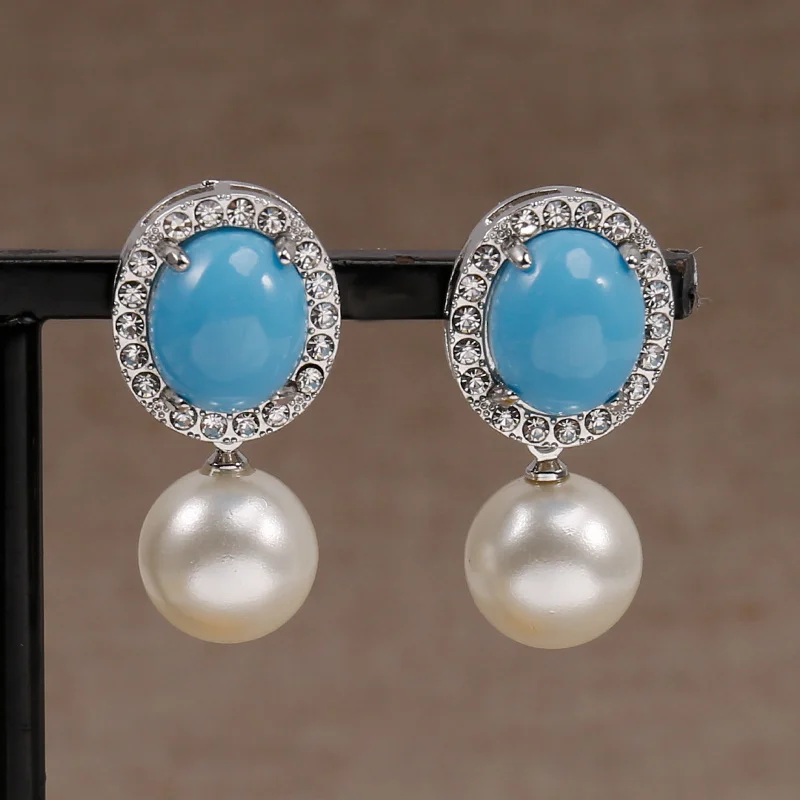Exquisite Ohrringe Modeschmuck Silber Farbe Schmuck blauen Stein weiße Perle Geburts stein Bra...