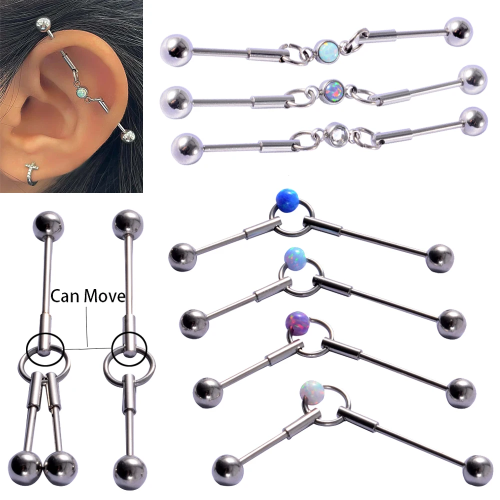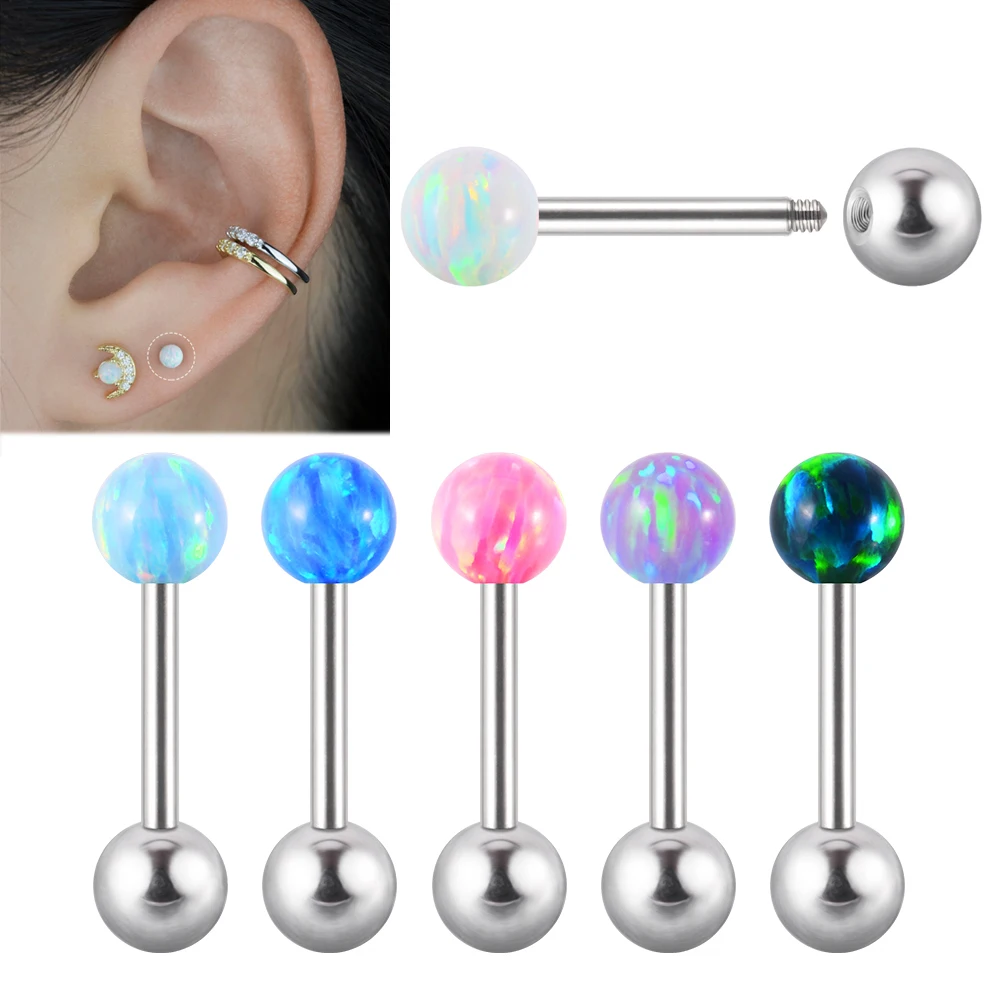 1PC Chirurgenstahl Opal Industrial Barbell Ring Ohrringe Opal Helix...