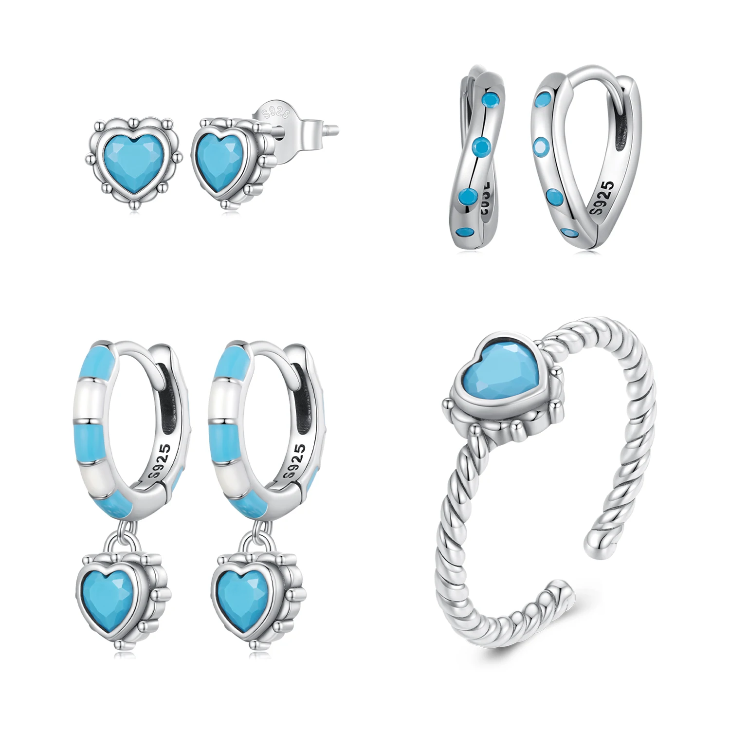 Ocean Blue of Heart Serie 925 Sterling Silber Wave Ohr clips Set Op...
