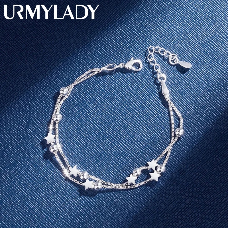 Feine Kette aus 925er Sterlingsilber mit Sternen, Armbänder für Damen, Charms, Modedesigne...