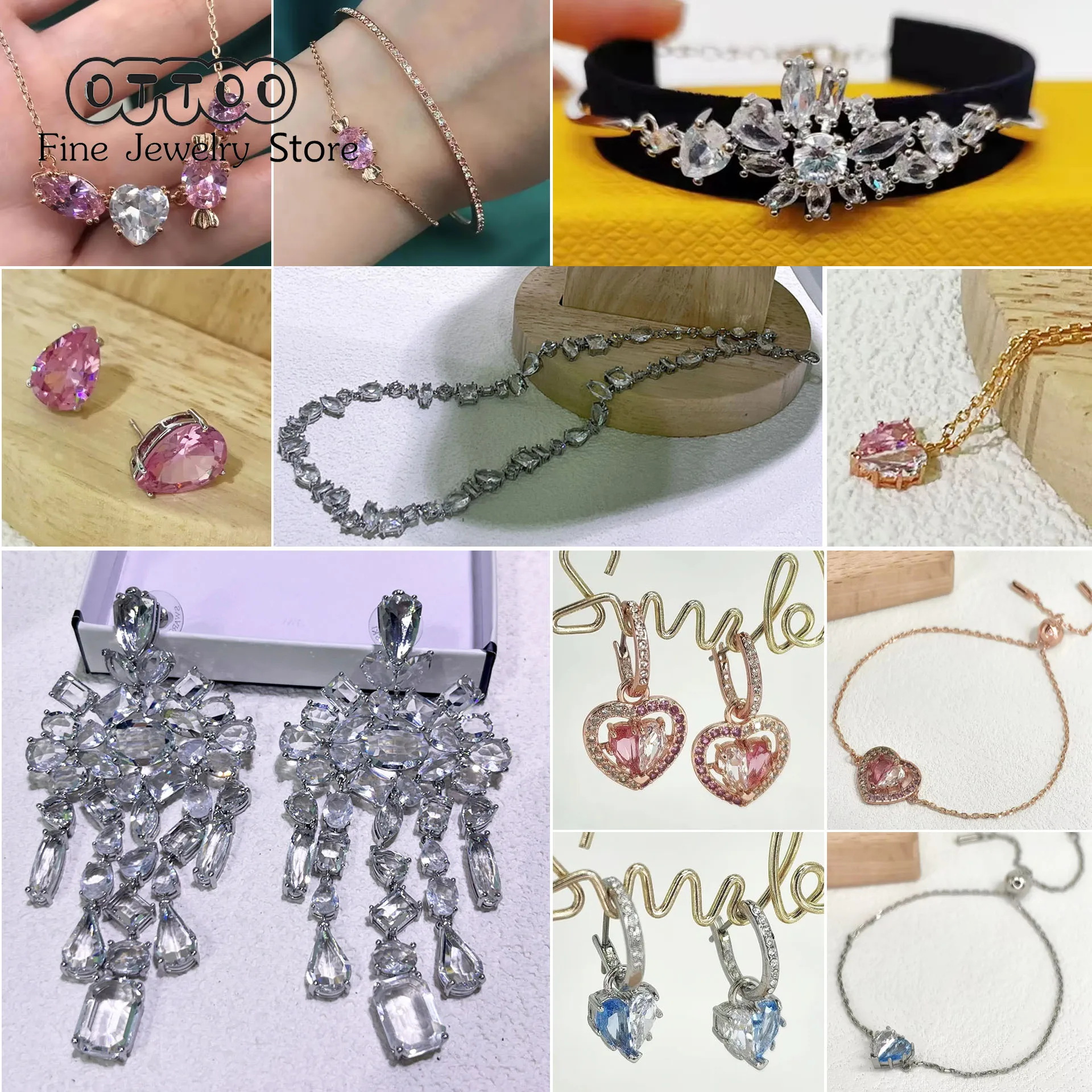 Original 2025, neues edles Schmuckset, Charms, Herz-Halskette, Liebes-Ohrring, Armband für Frau...