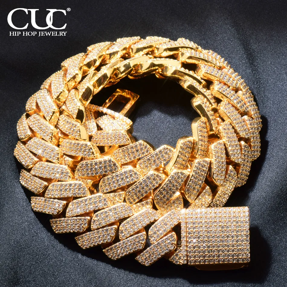 CUC Hip Hop Männer Halskette 20mm 3 Reihe Miami Kubanische Kette Gold Farbe Iced Out Zirkonia L...
