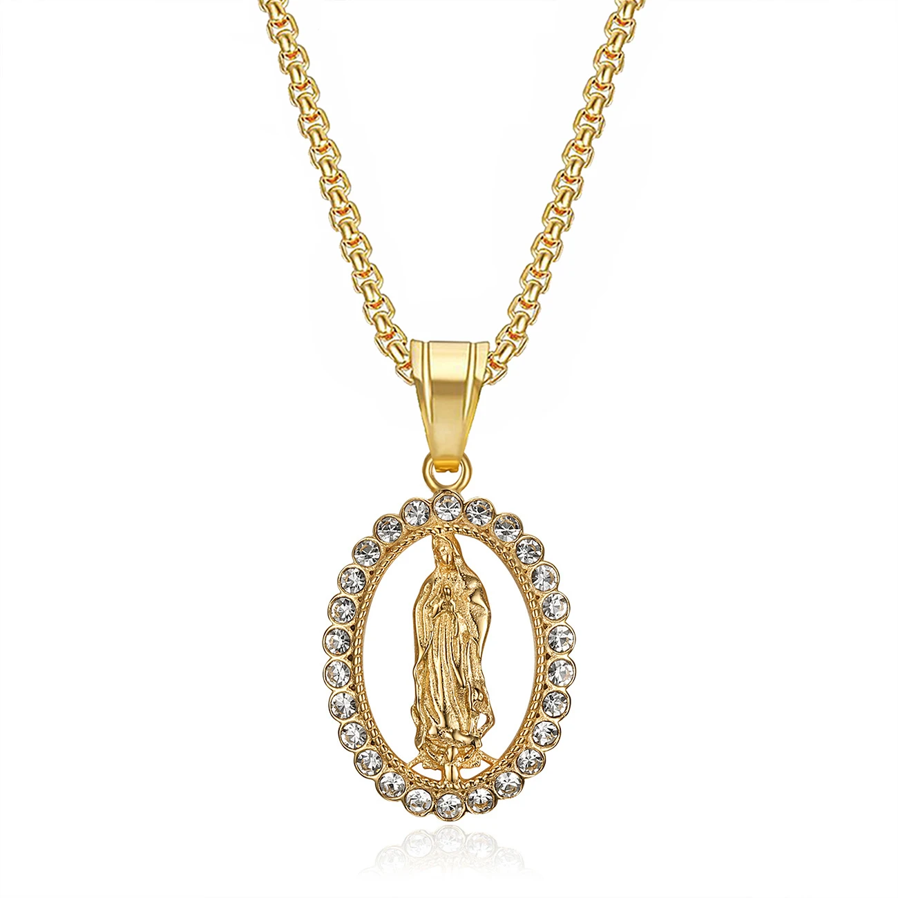 Hip Hop Iced Out Bling Jungfrau Maria Anhänger Weibliche Gold Farbe Edelstahl Christian Madonna...