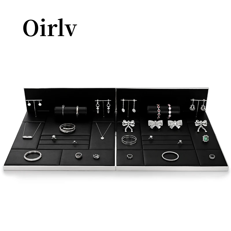 Oirlv Schmuck Display Tablett schwarz Leder Ring Ohrringe Armband Halskette Armreif Schmuck Display ...