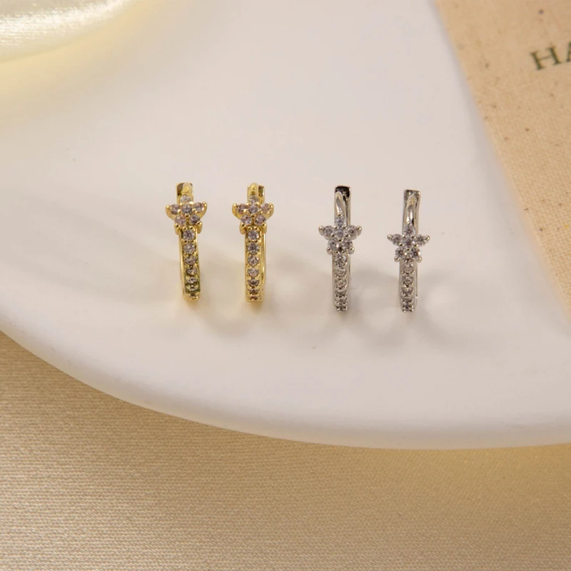Zirkon-Stern-Creolen für Damen, Vintage-Kristall, Zirkonia, Kreis, Huggie, klein, schlicht, hyp...