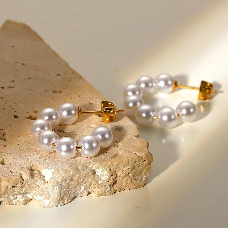 Loe | goldene Perlen ohrringe für Damen. Edelstahl C-Form Schm...