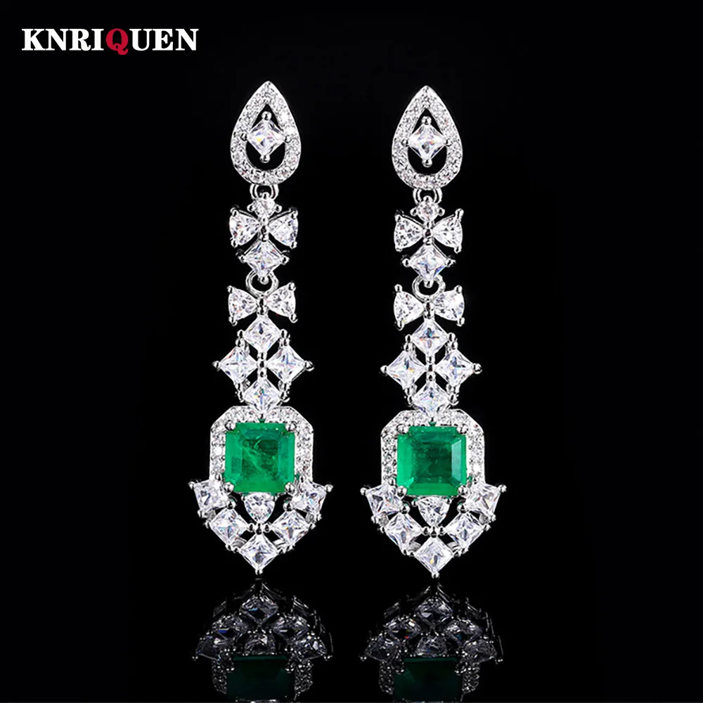 Kinel Neue Smaragd Cut Zirkon Mit 585 Rose Gold Ohrringe Für Frauen Luxus Platz Kristall Ohrrin...