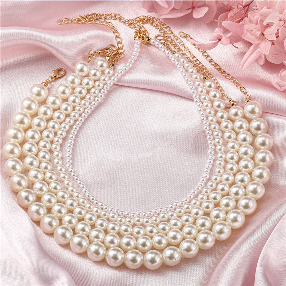 8mm/10mm Elegante Weiße Imitation Perle Perlen Halskette Für Frauen Männer Vintage P...