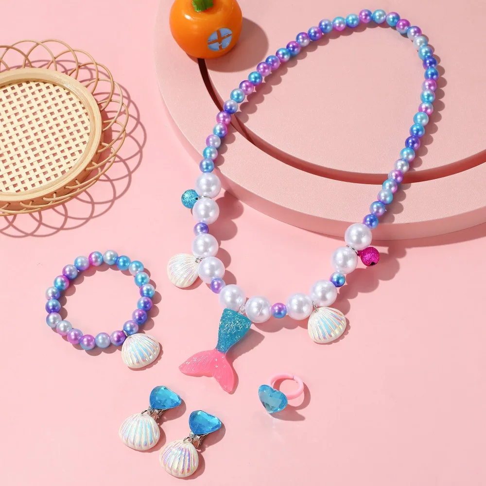 5 Stücke Mädchen Prinzessin Meerjungfrau Shell Charme Halskette Armband Ohrringe Ringe Sch...