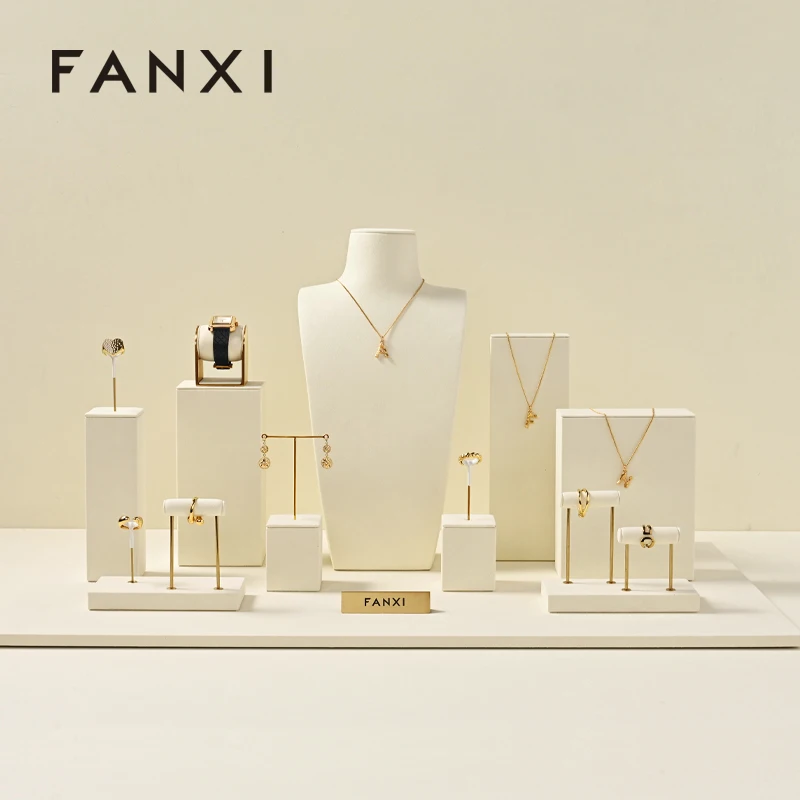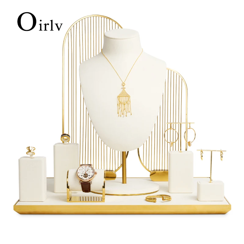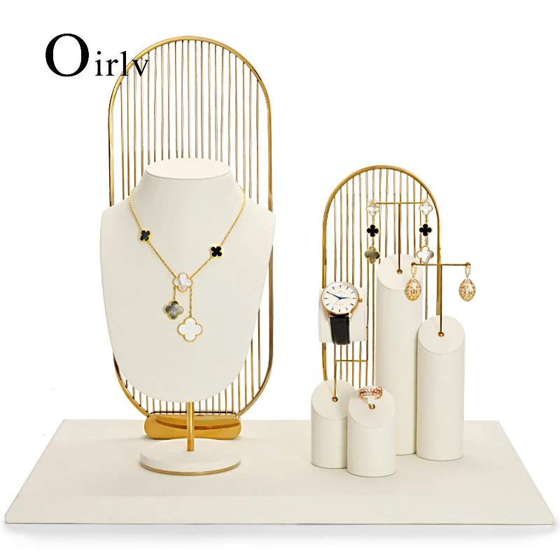 Oirlv beige Mikro faser Schmuck Fenster Display Set mit Metall Hintergrund Schmuck ausgestellt Requi...
