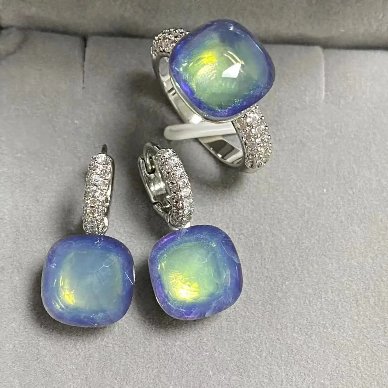 2 Stück/Set 12,6mm Ring Ohrringe Set Kristall Schmuck Set platini ert 40 Farben Süßi...