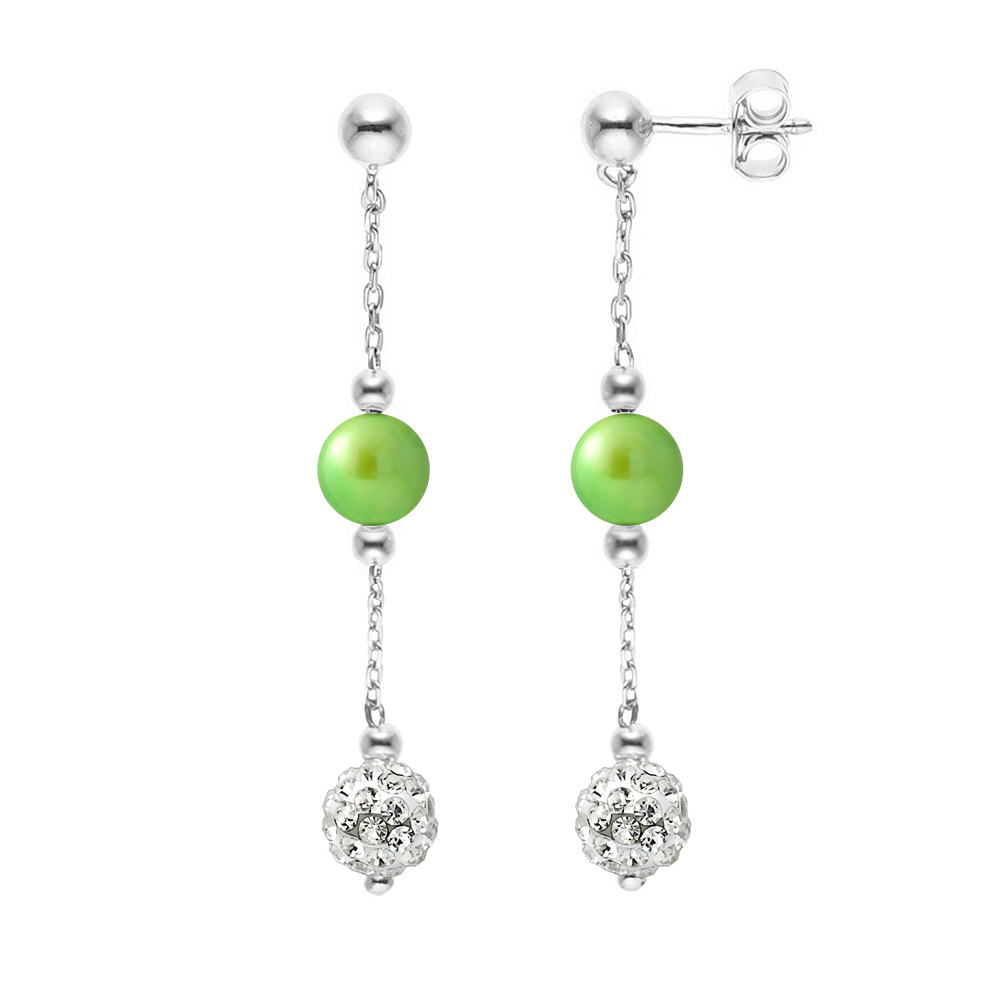 Anhänger Ohrringe Kugeln mit echtem Kristall weiß und Zuchtperlen - Flashy Green Color - ...