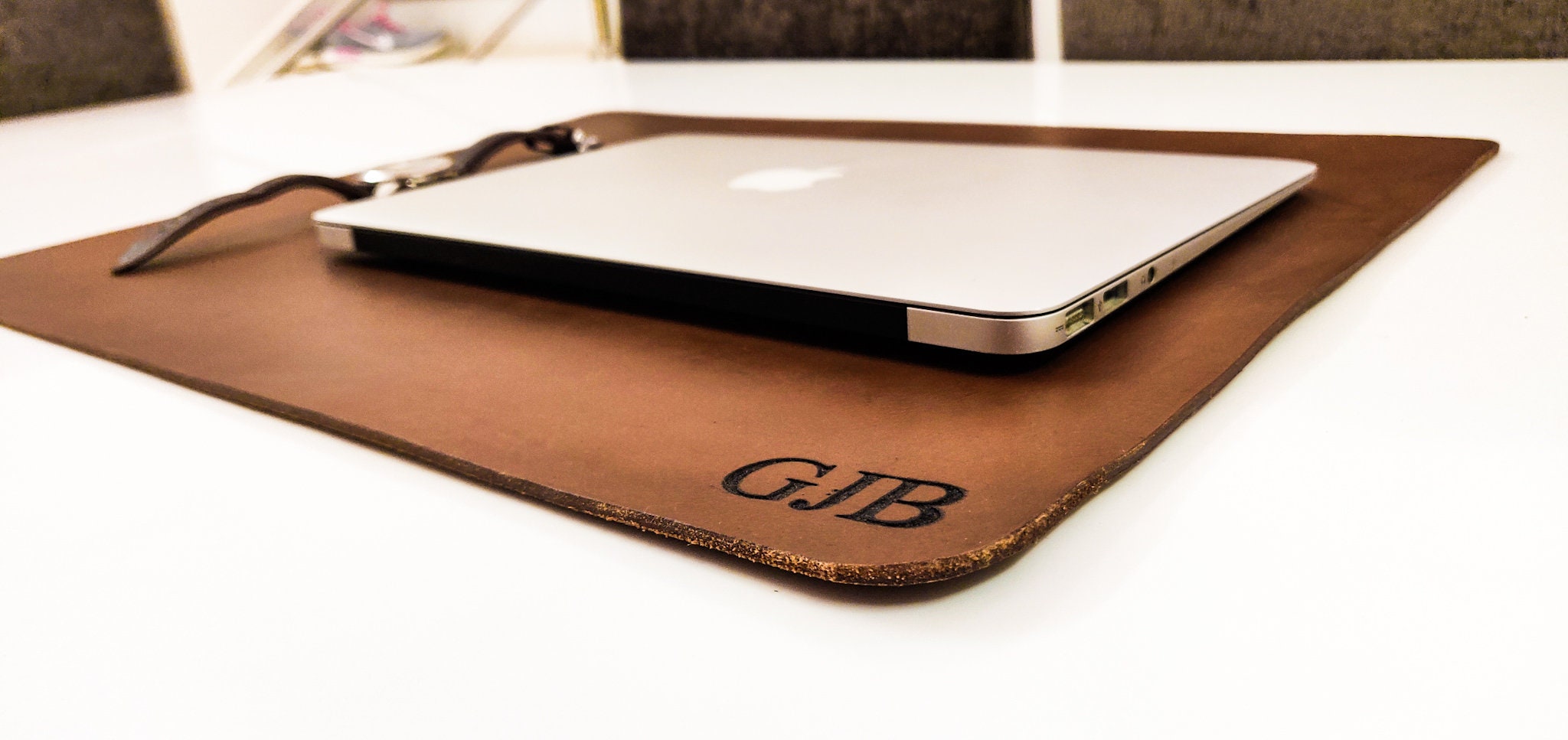 Handgefertigte Schreibtischunterlage aus 100% echtem Vintage-Leder in Braun mit runden Ecken KOSTENL...