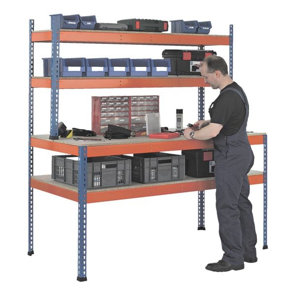 Werkbank »18000-A1« 153,6 x 198,1 cm mit Regal, Höhe: 1981 mm, Farbe: blau, orange,...