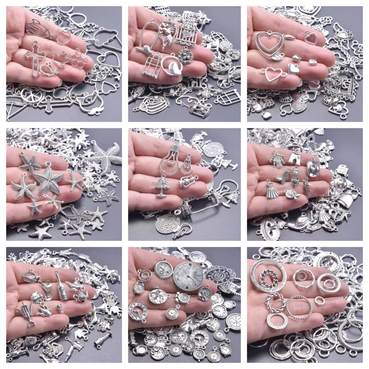 Zufällige Mischung 30 Stücke Silber Farbe Metall Vogelkäfig Uhr Wein Set Stern Herzen...