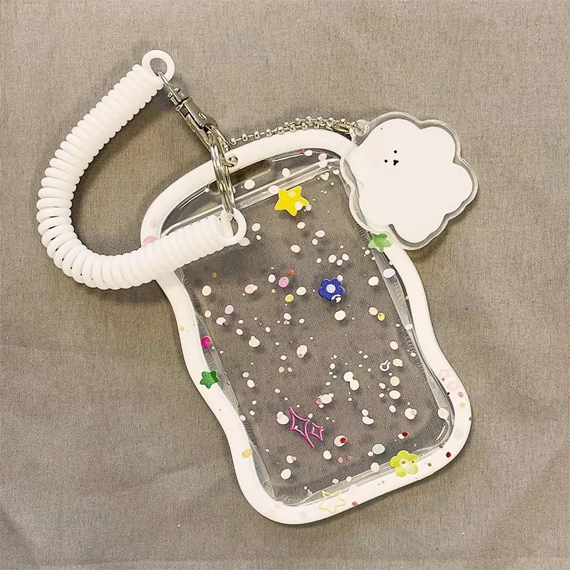 Kartenhalter mit gepunktetem Stern-Anhänger, weißes Federschnur-Design, transparentes Geh...