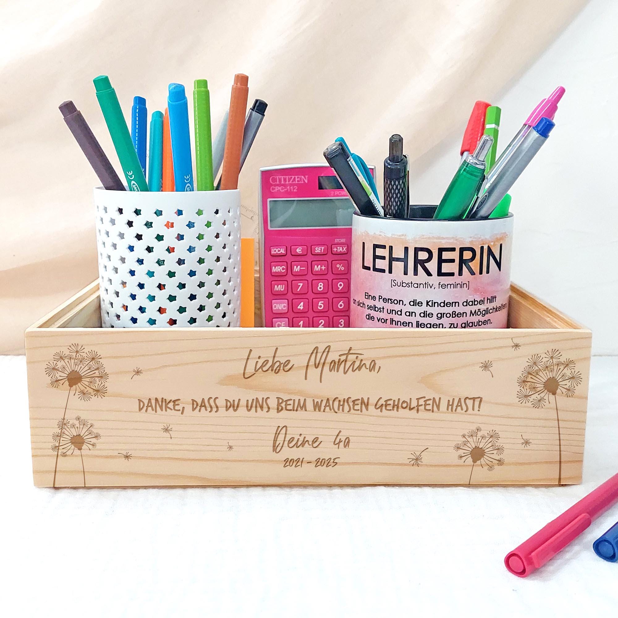 Gravierte Holzkiste | Tischbox mit Namen & Klasse personalisier...