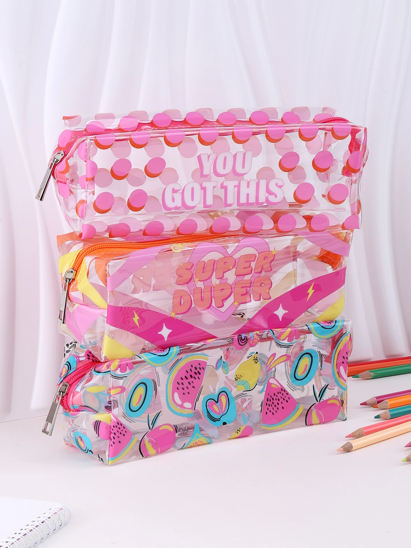 Pvc Waterproof Pencil Case Summer Fruit Pencil Pouch Back-To-School Stationery Storage Bag Transpare...