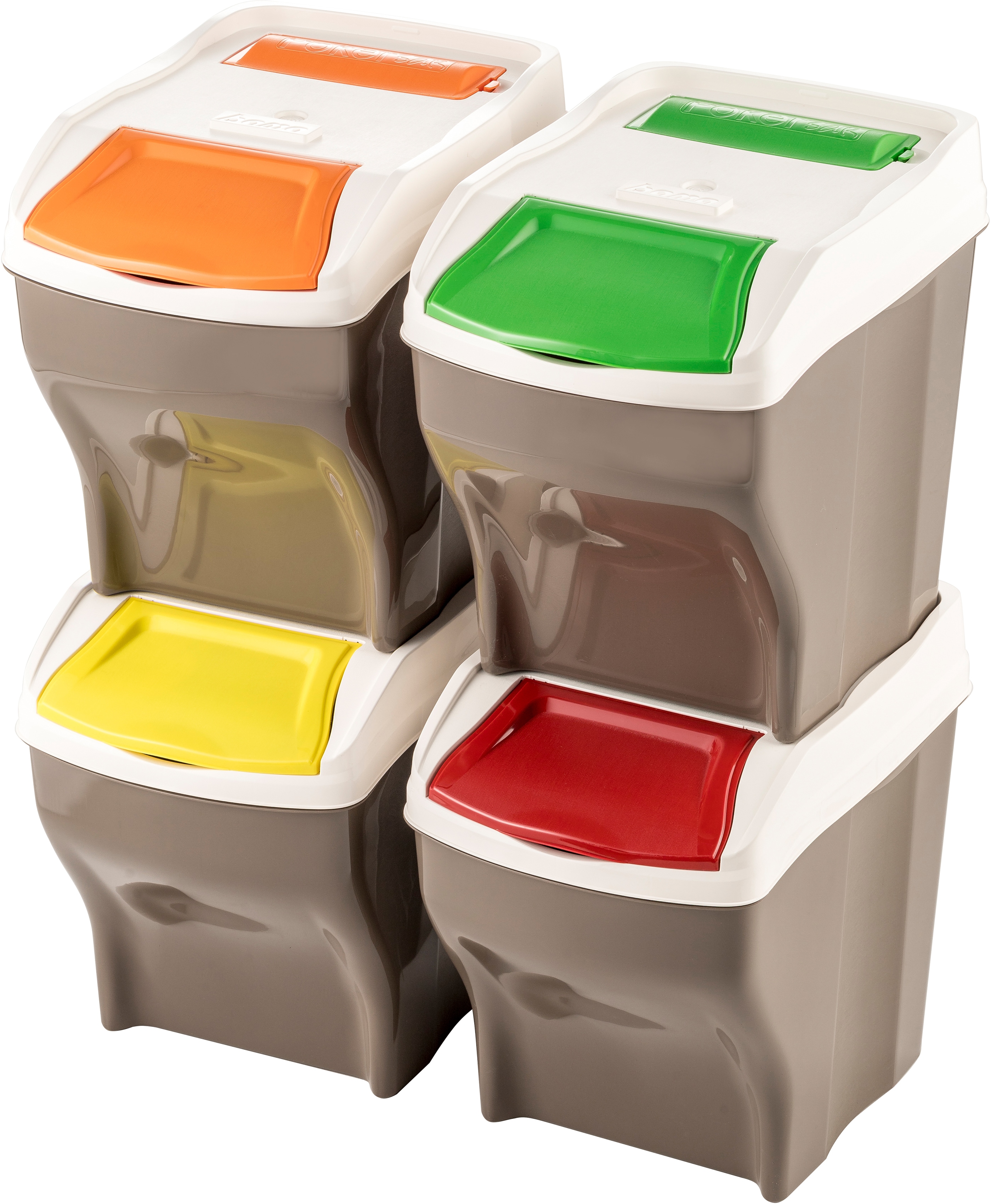 Abfallsammler-Set aus hochwertigem Kunststoff in formschönem Design. Vier einzelne Abfalleimer ...