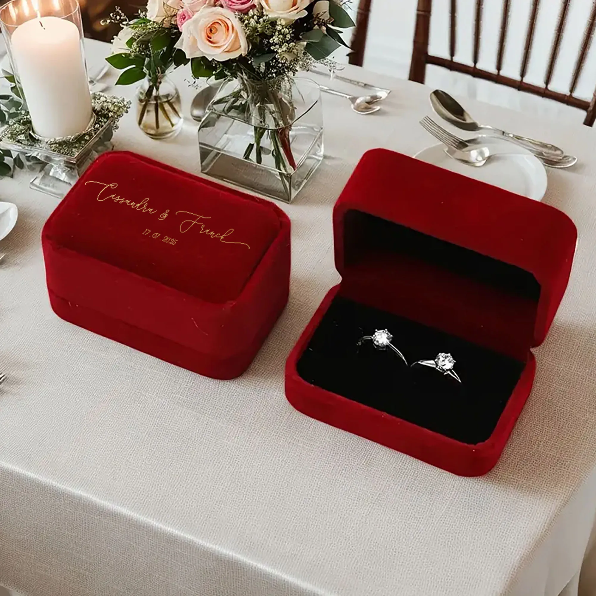 Benutzerdefinierte Flanell Ring Box Doppel Slot Ring Träger Box Hochzeit Schmuck Box Geschenk f...
