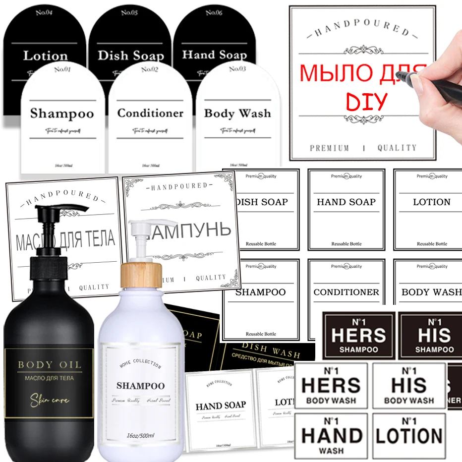 Badezimmer-Seifenspender-Etiketten-Set, abnehmbares Shampoo, Duschg...