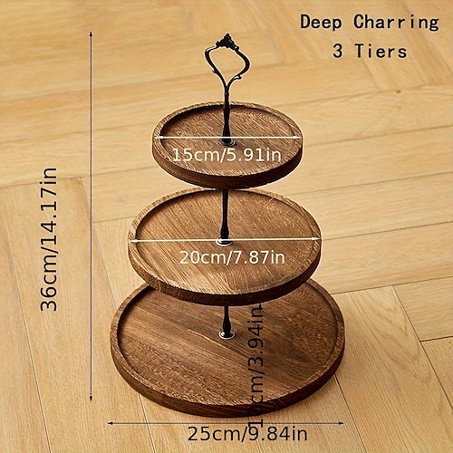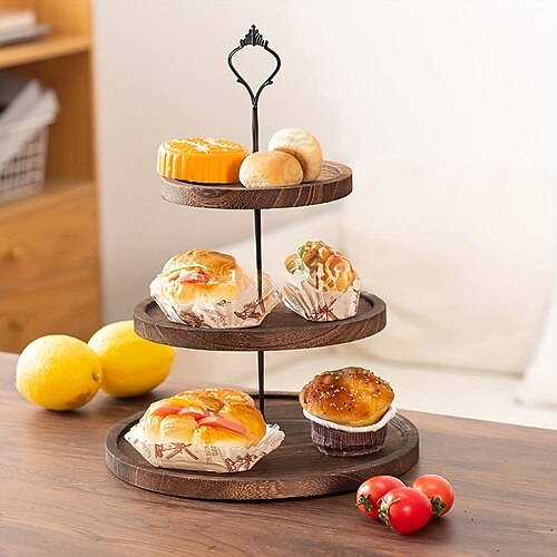 3-stöckige, mehrlagige Tortenplatte aus Massivholz Desserttabl...