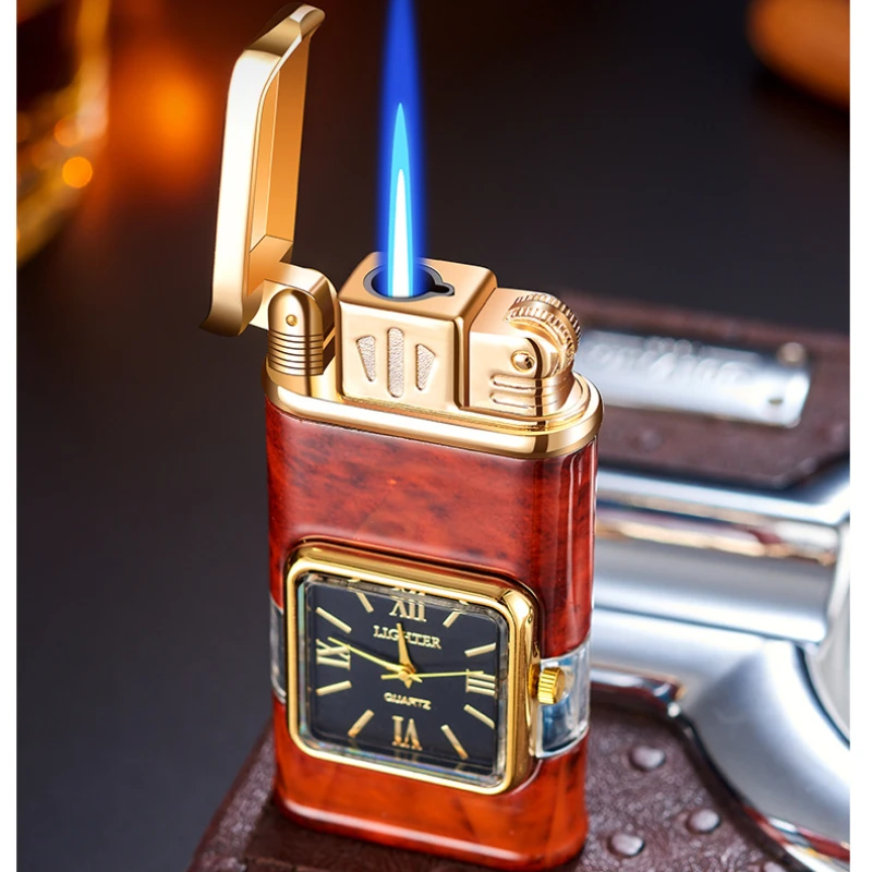 Kreatives Multifunktionsfeuerzeug mit Uhr, personalisierte blaue Flamme sichtbare Gaskammer, hochwer...