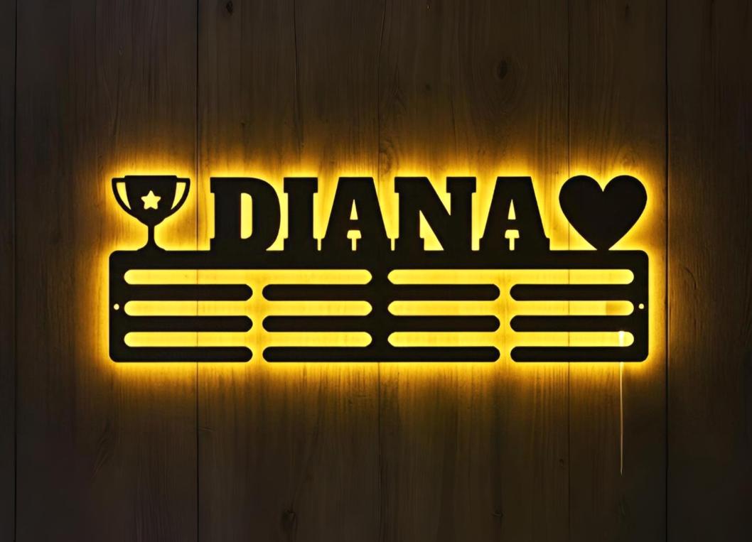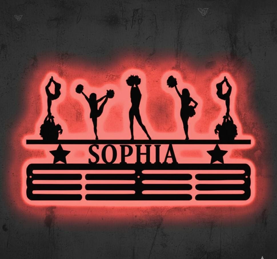 Personalized Cheerleader Medal Hanger with LED, Custom Cheer Sign f...