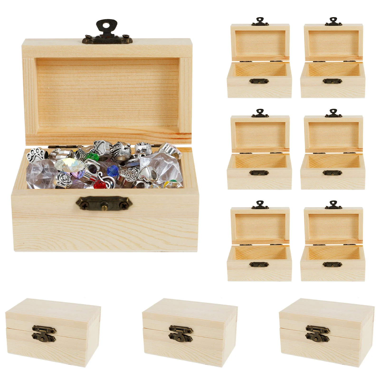 10 Stück kleine Holzkiste mit Deckel, Verschlussverschluss für die Schmuckaufbewahrung, un...