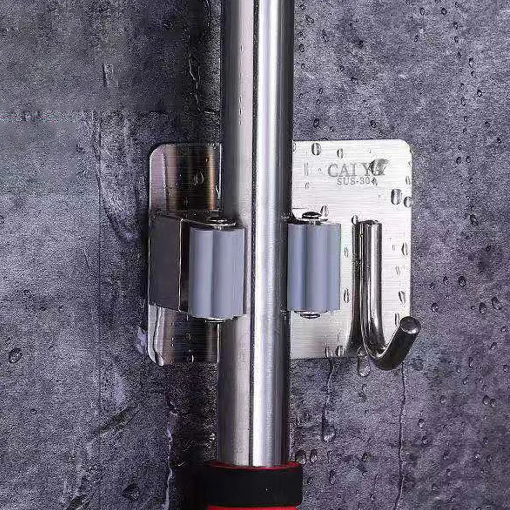 Wall Mounted Mop Broom Organizer Self Adhesive Storage Rack for Bathroom Kitchen Closet Garden Easy ...