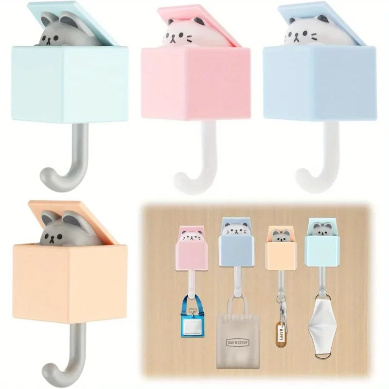 4 stücke selbst klebende Cartoon Katze Haken Aufbewahrung halt...