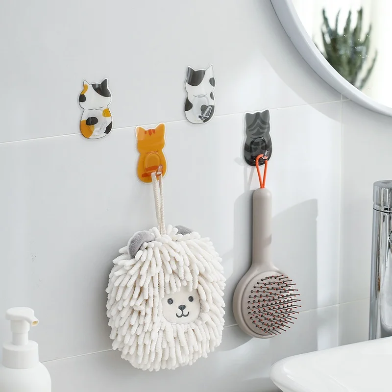 4 stücke selbst klebende Cartoon Katze Haken Aufbewahrung halter für Bad Küche Kleide...