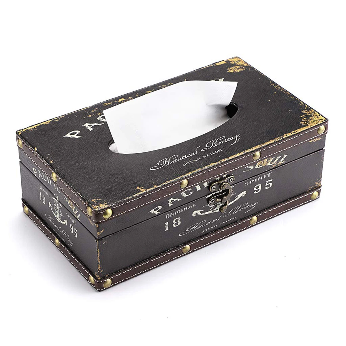 Gefertigte Retro-Taschentuchbox aus Holz, rechteckig, PU-Leder, Kos...