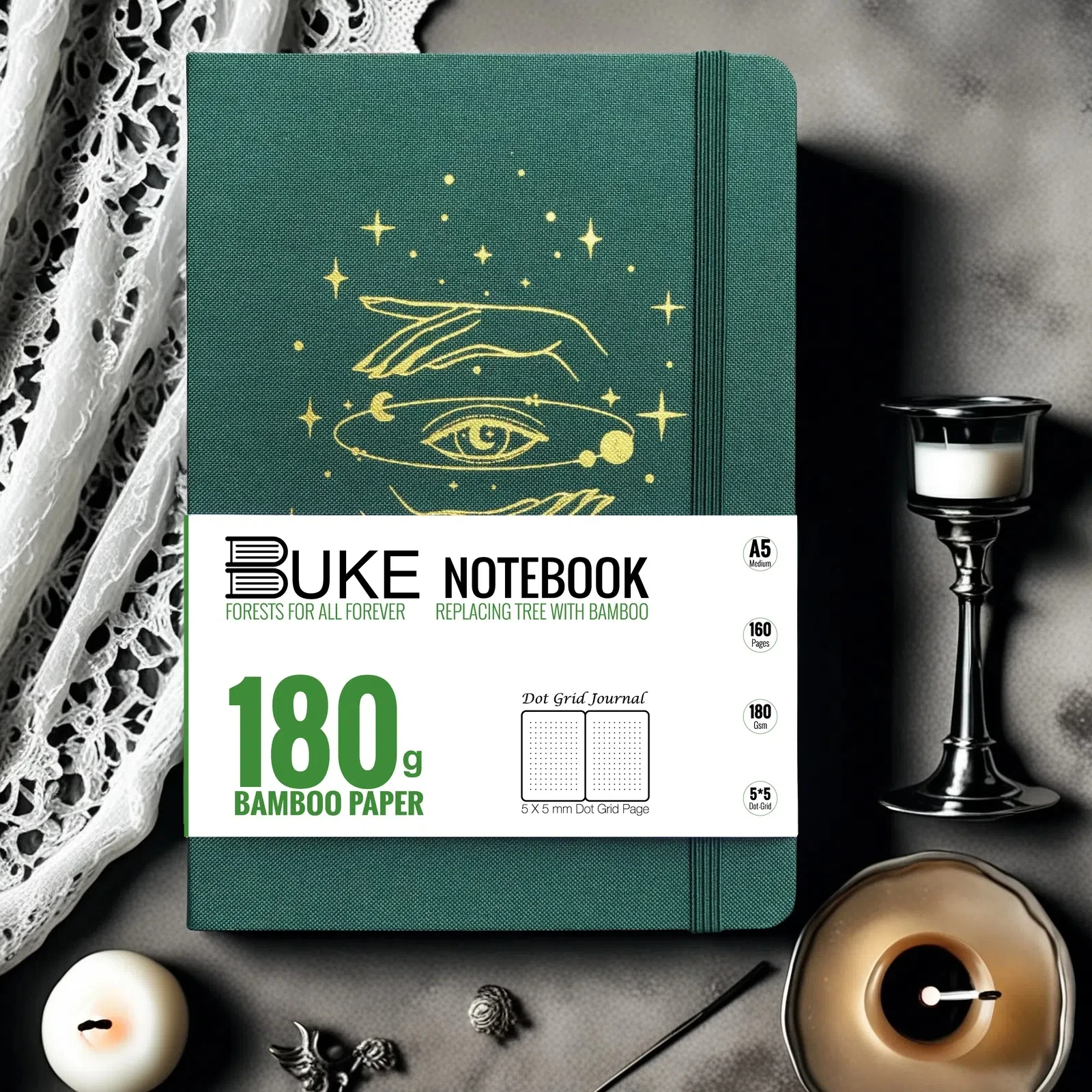 BUJO Dot Grid Notebook A5 – Premium-Tagebuch mit Hardcover, 180 g/m2 dickes Papier, silberne K...