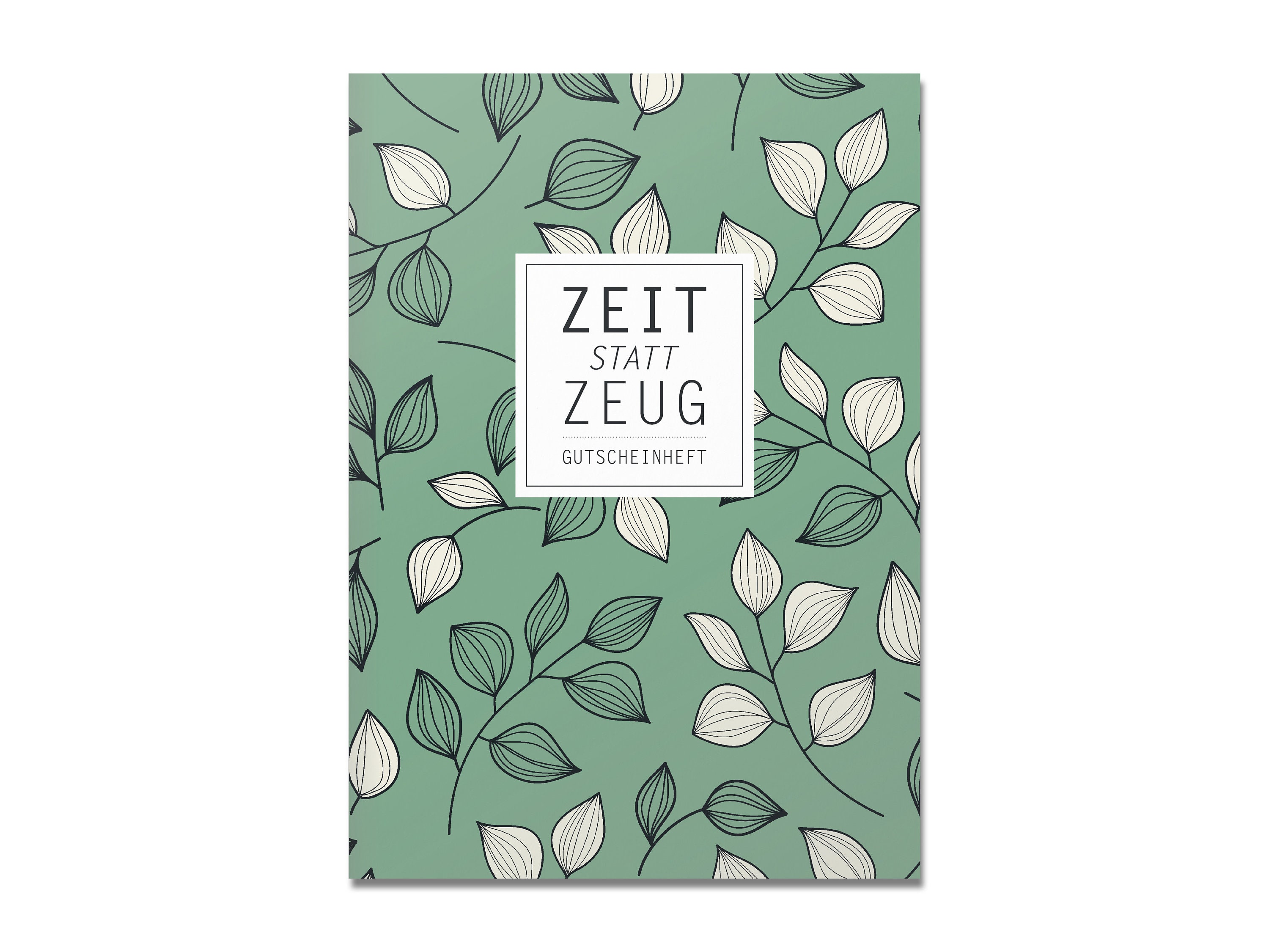 Gutscheinheft Din A6, 10 Gutscheine, hellgrün, Zeit statt Zeug