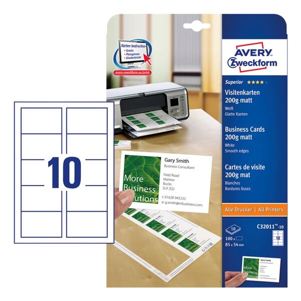 Avery Zweckform Visitenkarten C32011-10 weiß, 8.5x5.4 cm