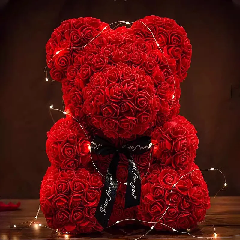 Valentines Day 25cm Artificial Teddy Rose Flower Bear with Box Roma...
