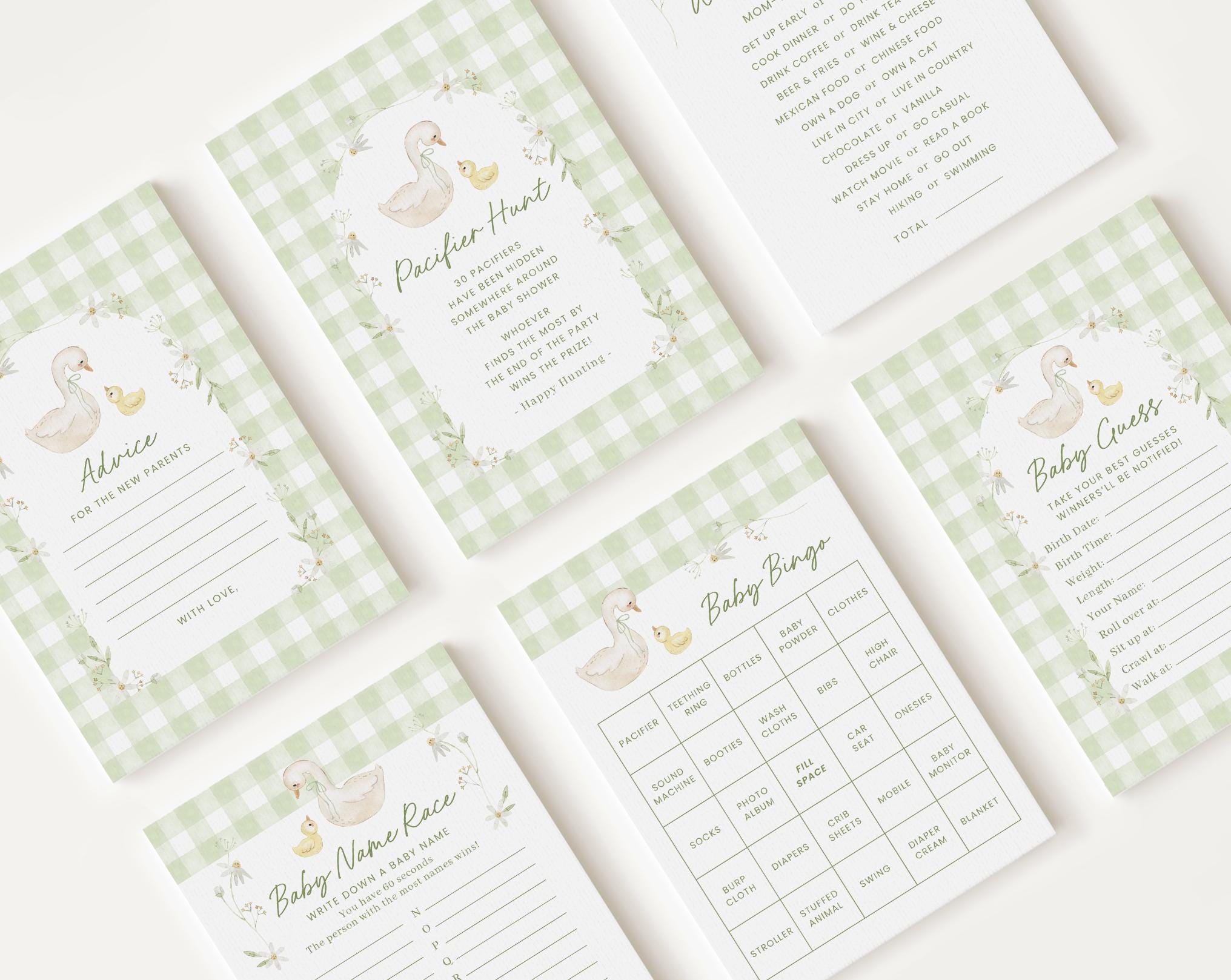 10 bearbeitbare Muttergans-Babyparty-Spiele-Bundle, Alberne Gans-Ba...