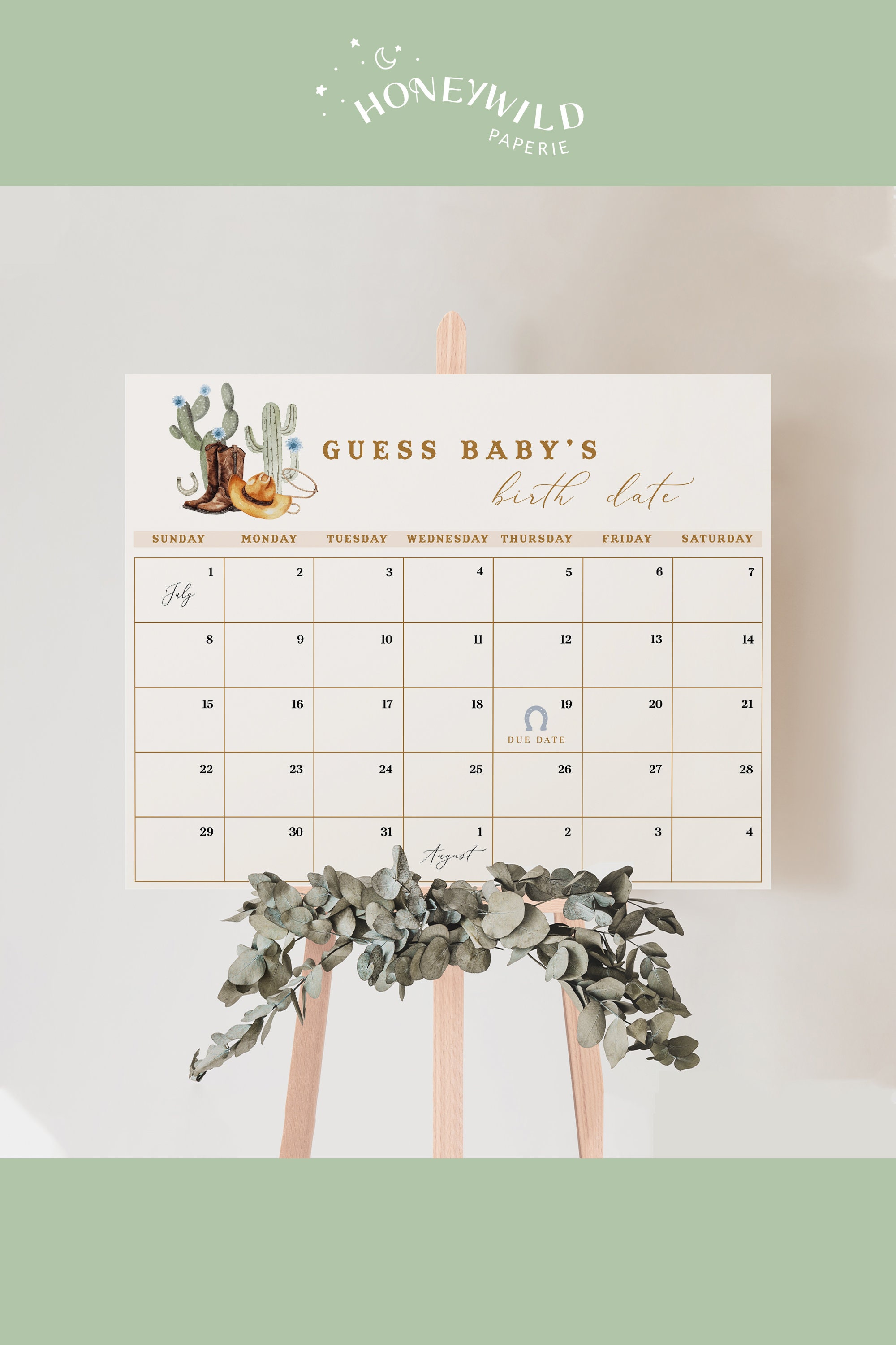 Bearbeitbares Cowboy Babyparty Spiel - Errate den Fälligkeitsk...