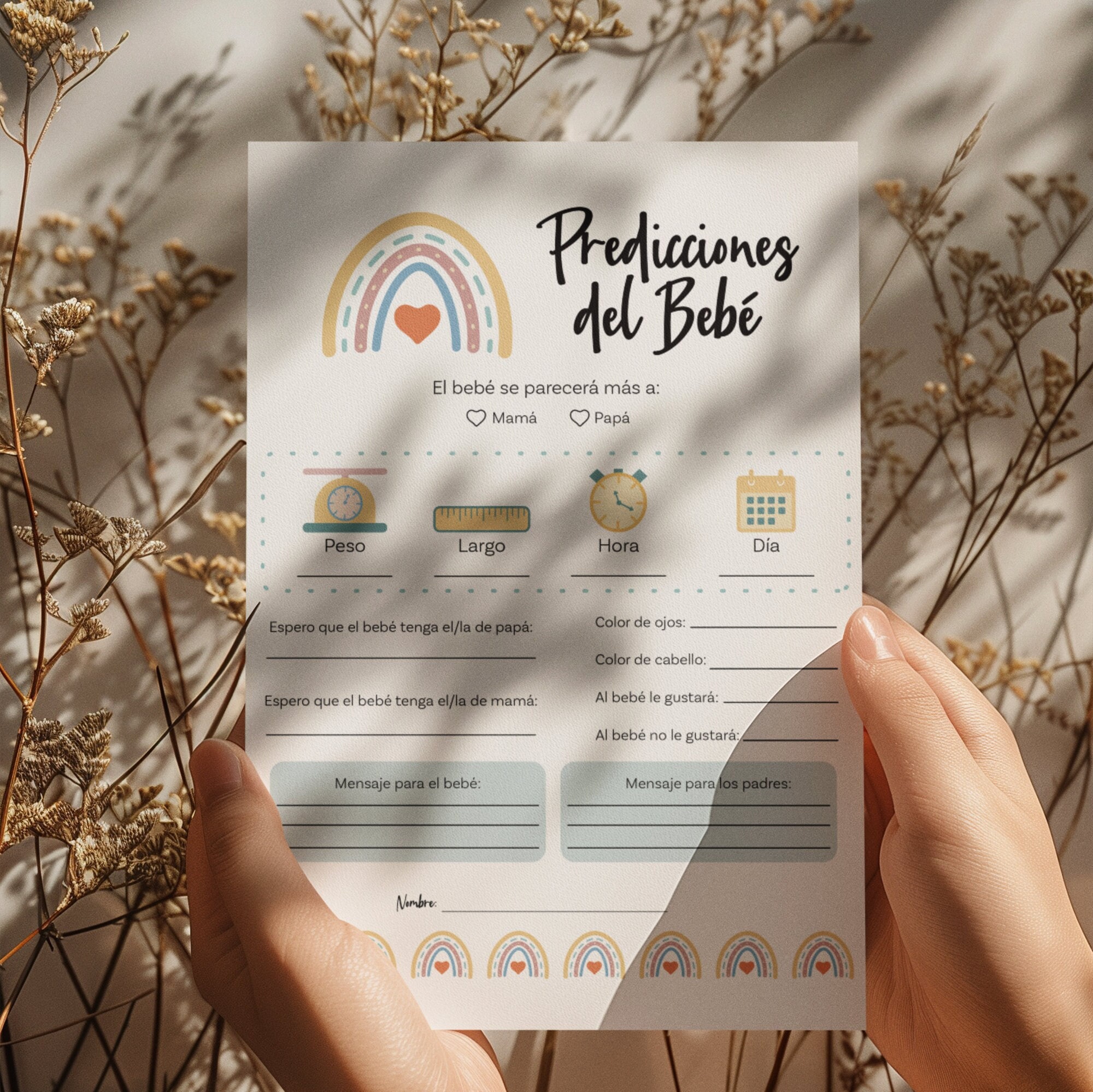 Baby Shower vorhersage Spiel Spanisch | Regenbogen Boho Thema | Spa...