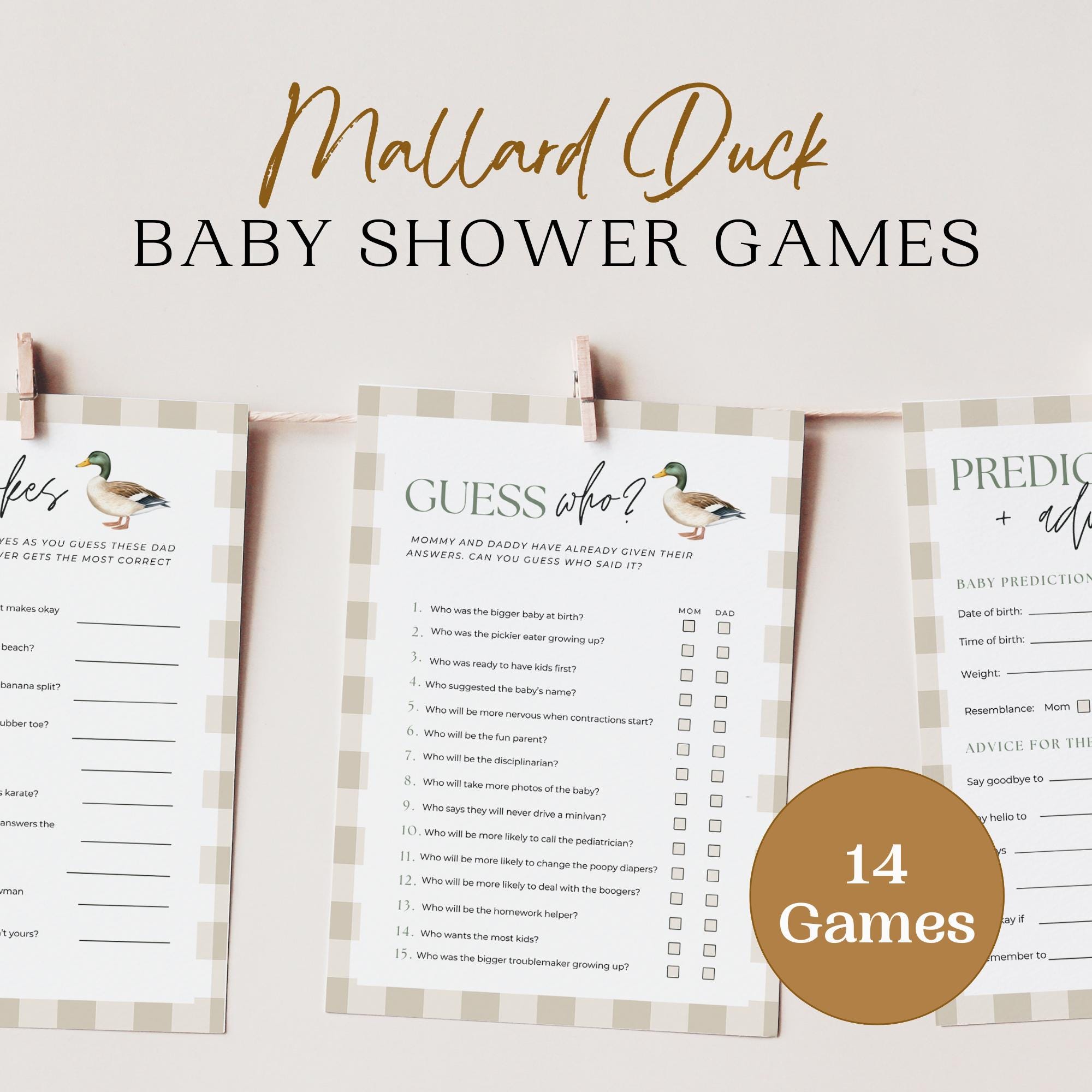 Verschönern Sie Ihre Feier mit diesem druckbaren Paket mit Stockenten-Babyparty-Spiel. Mit Baby...