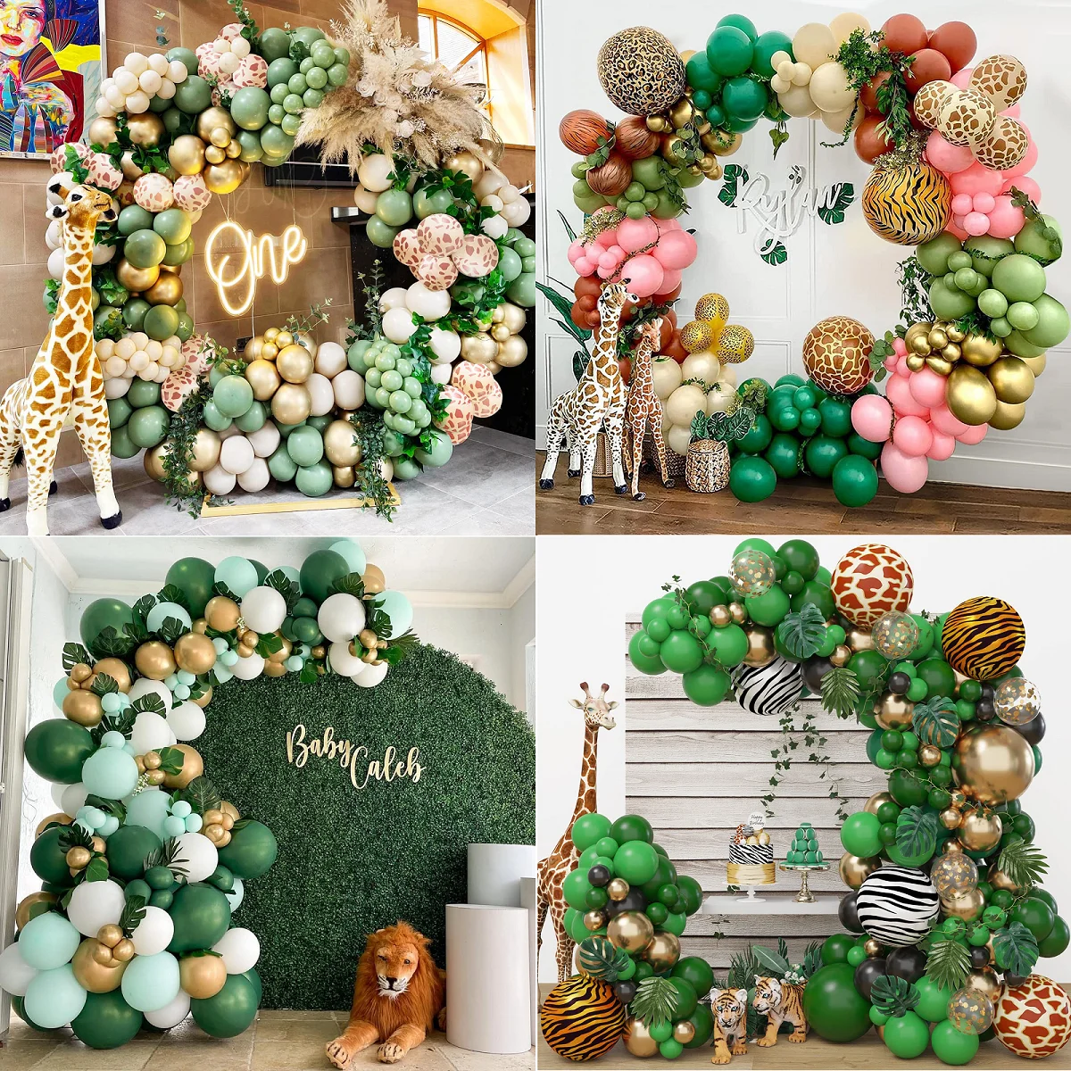 1 Set grüner Kranzbogen-Set mit Dschungelmotiv, goldene Luftba...