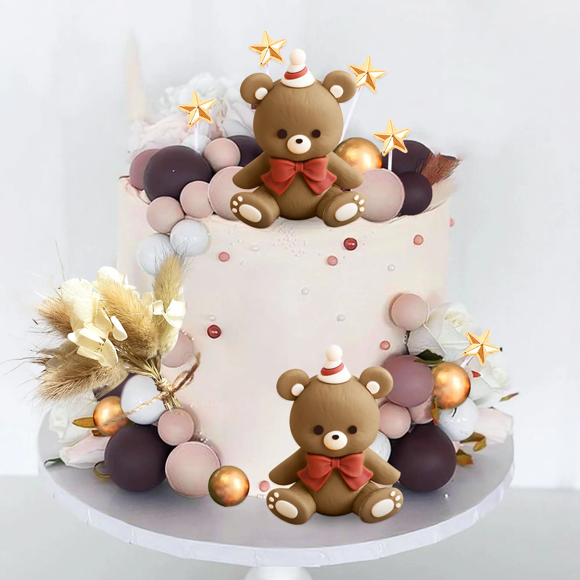 LaVenty Braunbär Kuchendekoration Baby Bär Babyparty Tortenaufsatz Bären Kuchendekora...