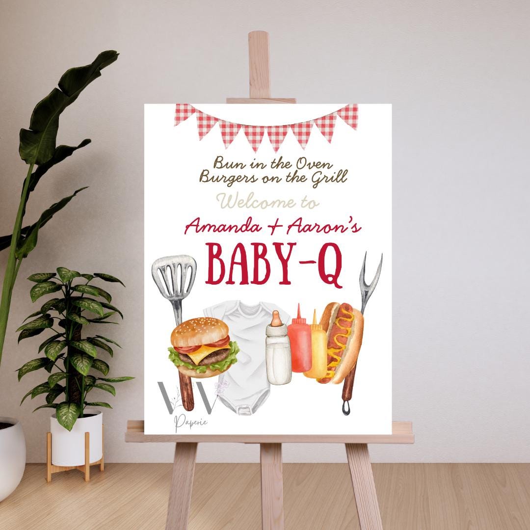 Baby-Q Babyparty Willkommensschild Vorlage, BBQ Babyparty Willkomme...