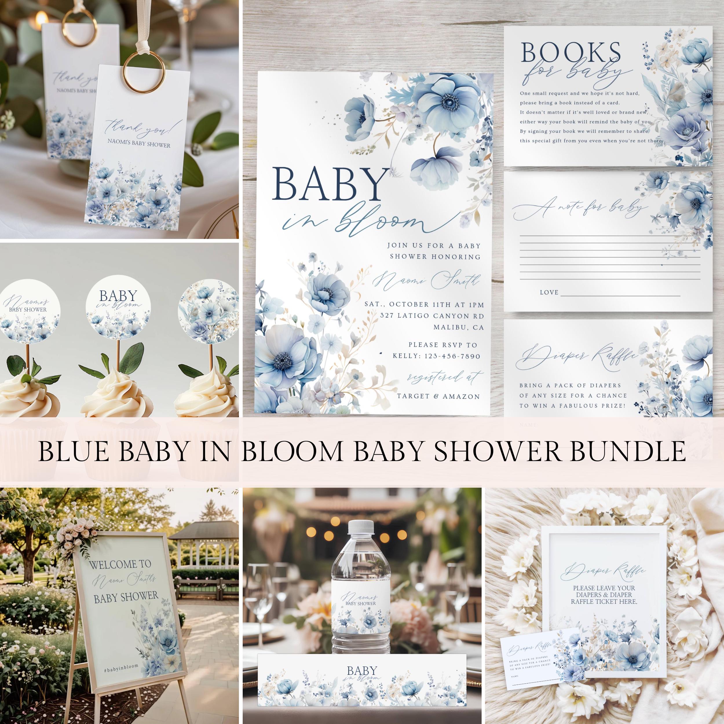 Blaues Baby in Blüte Babyparty Bundle-Vorlage, Blaue Blumen Ba...