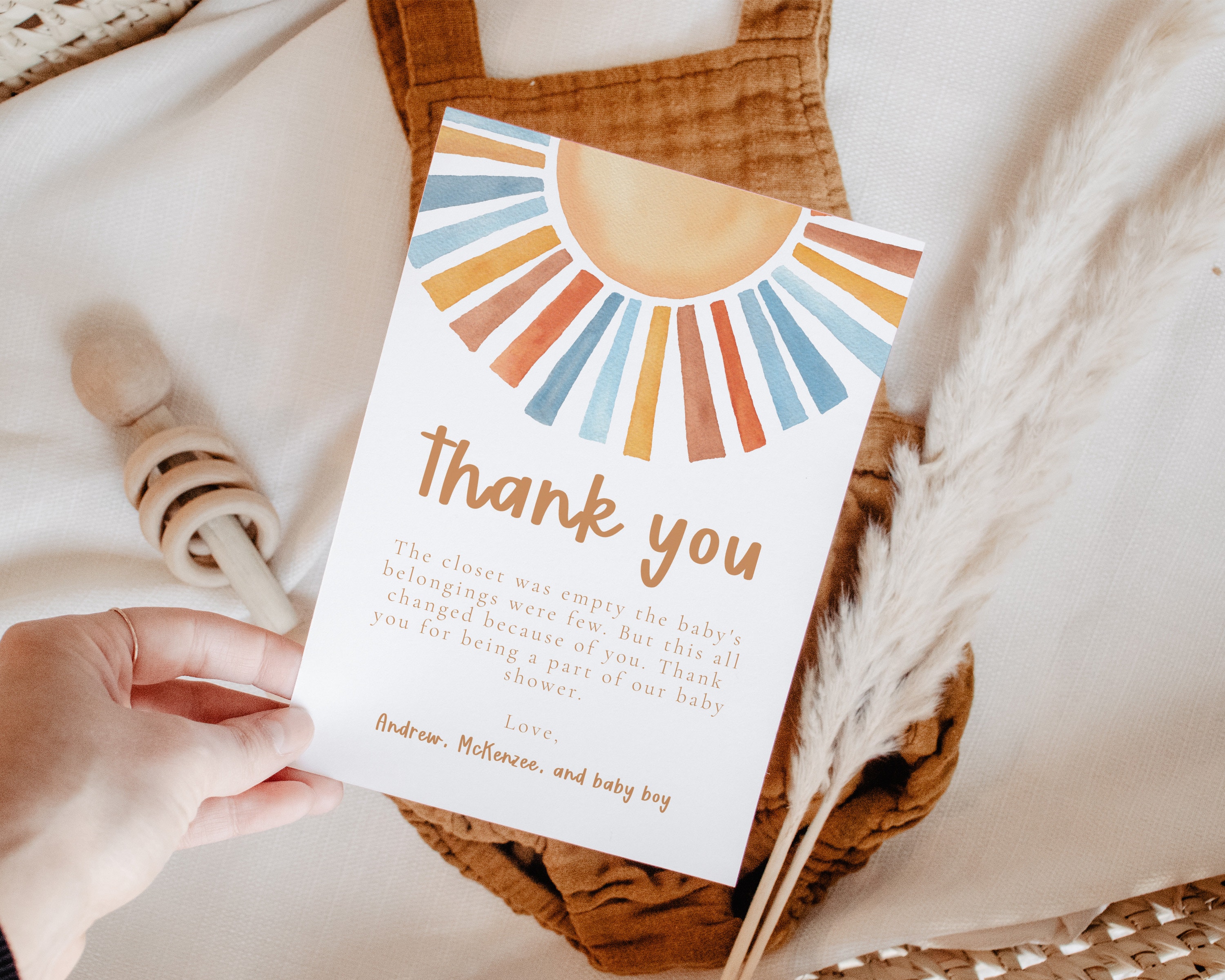 Danke Notizen hier kommt der Sohn Babyparty, Sonnenschein Babyparty...