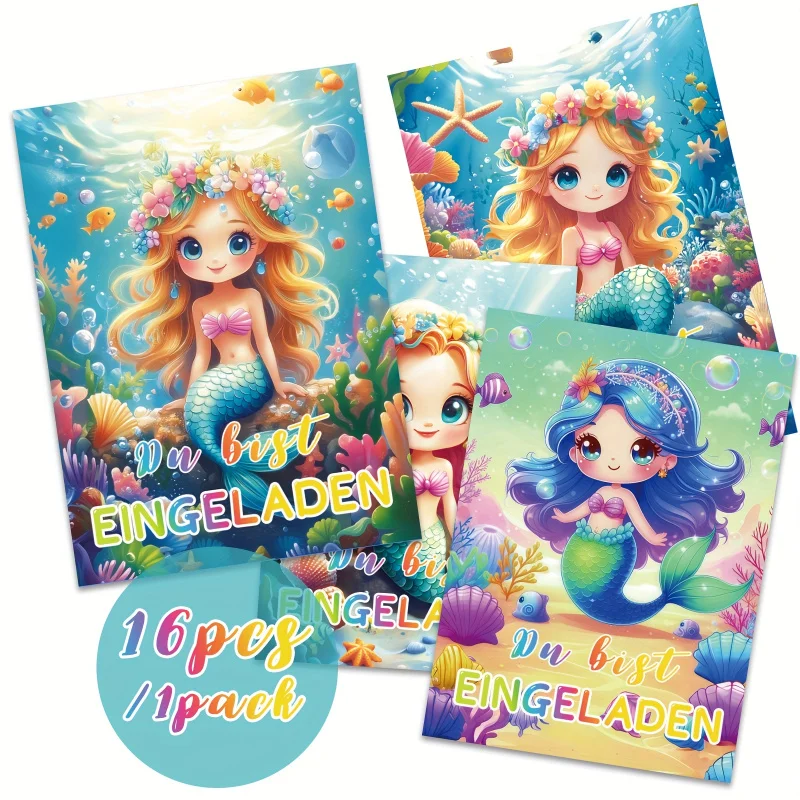 16-teiliges Meerjungfrau-Einladungskarten-Set – 4 verschieden...
